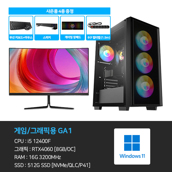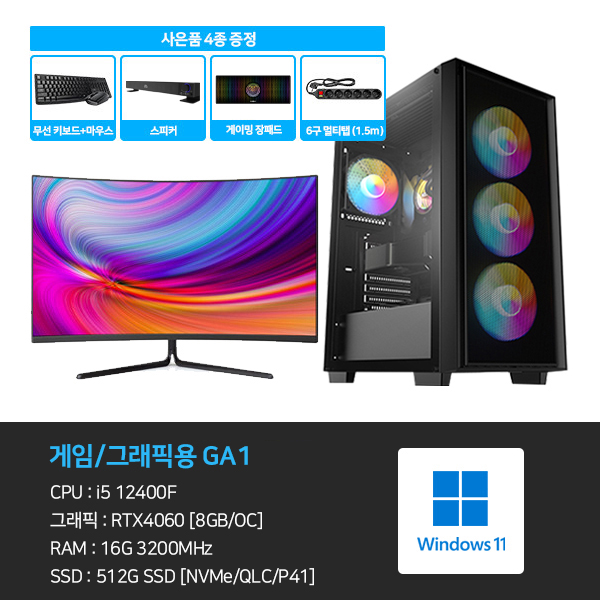 [데스크탑] 3D 게임용 본체+윈도우11+악세사리+게이밍모니터24