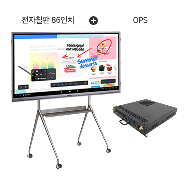 하이크비전 4K UHD 터치스크린 86인치 전자칠판 + 이동형 브라켓 포함 + OPS