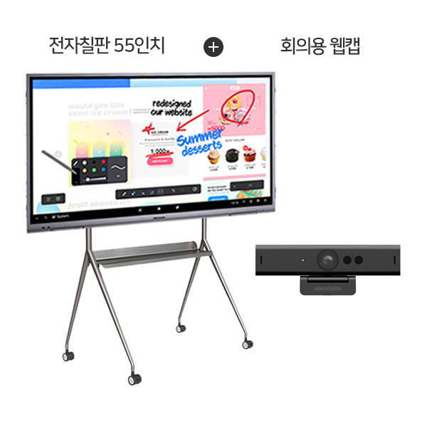 하이크비전 4K UHD 터치스크린 55인치 전자칠판 + 이동형 브라켓 포함 + 회의용 웹캠