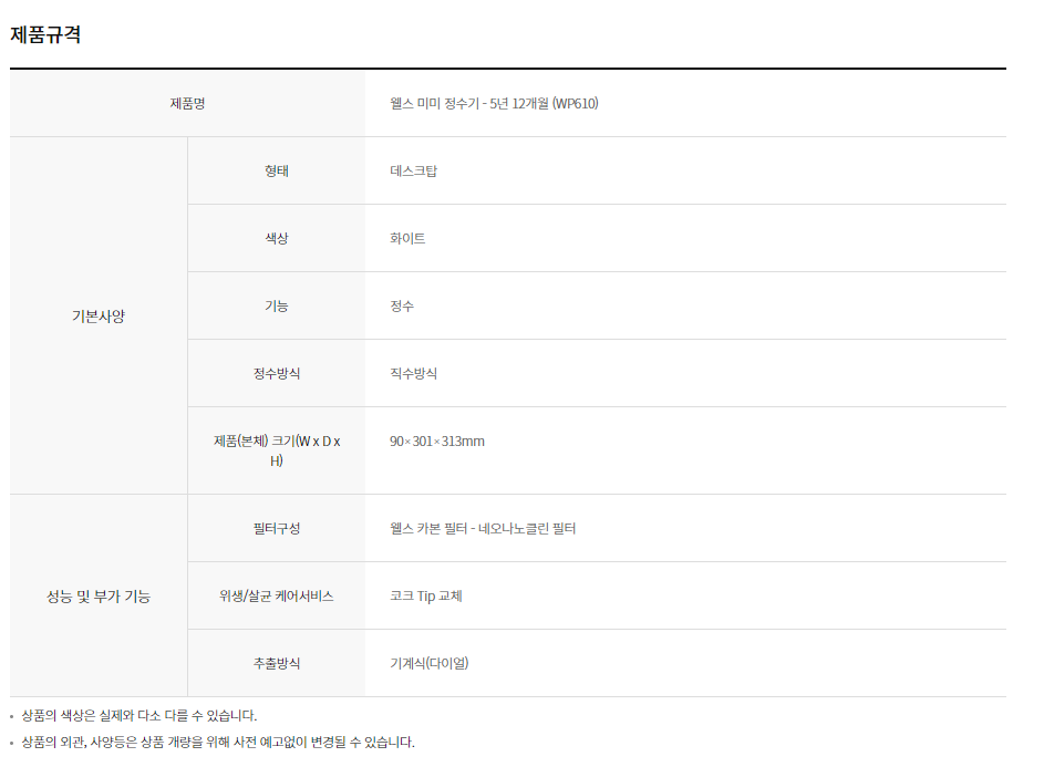 웰스 미미 정수기 (셀프관리+6개월택배)