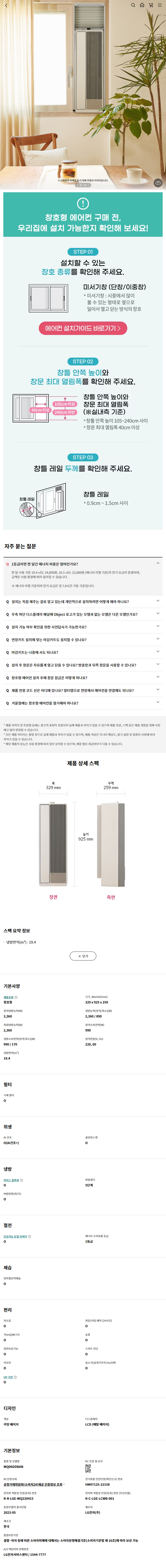 LG전자 휘센 오브제컬렉션 5.8평형 연장키트 45cm 창문형 에어컨 (마감키트 미포함)