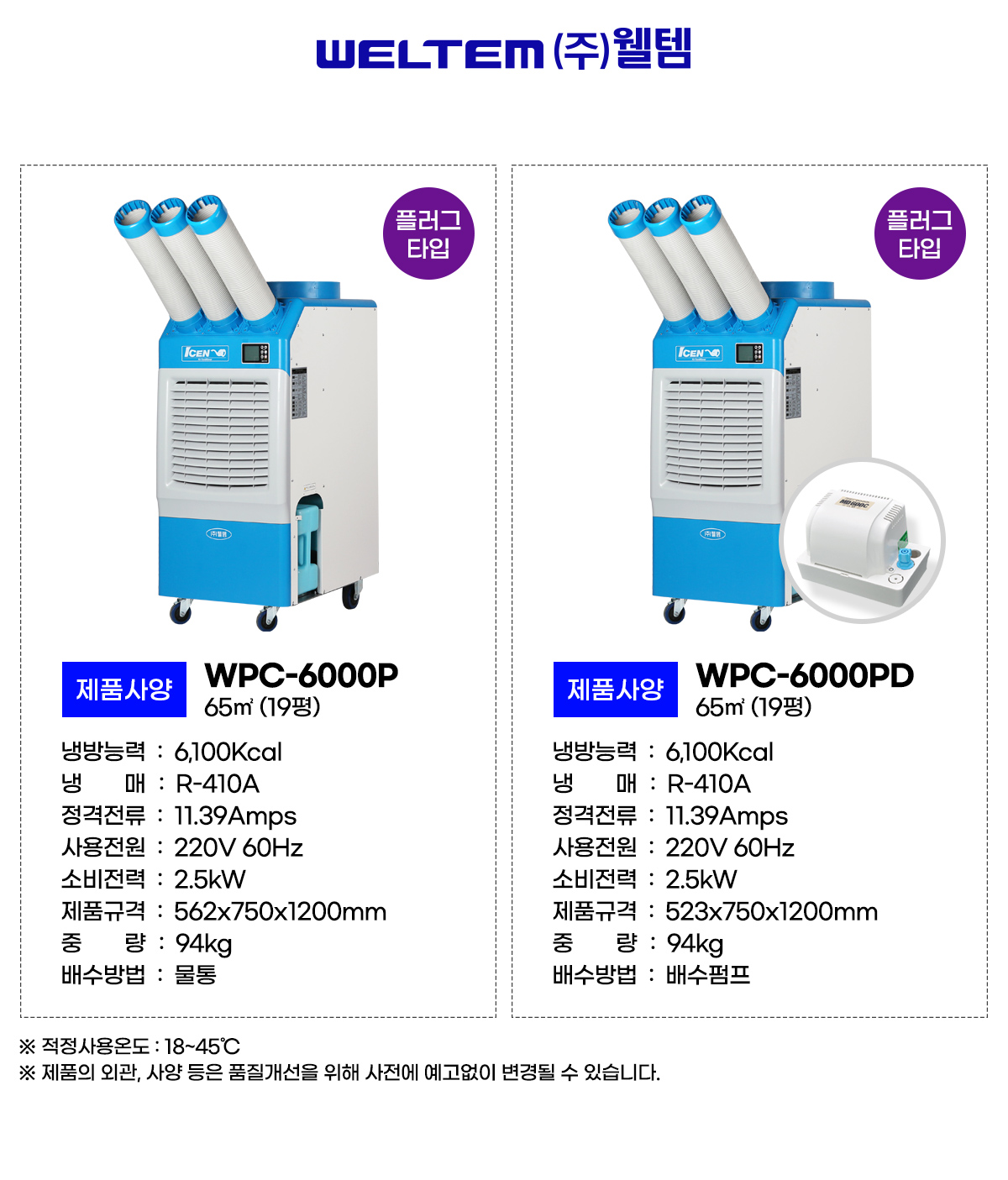 웰템 이동식 19평형 에어컨 (드레인펌프)
