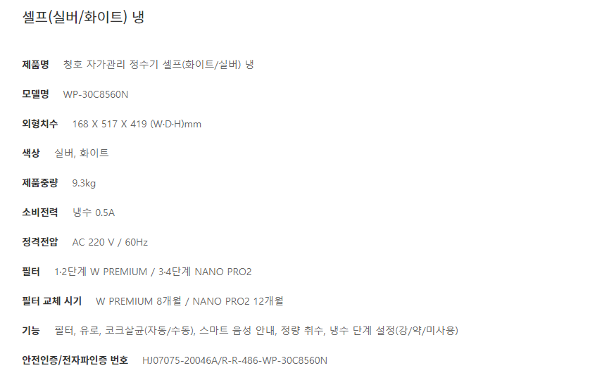 정수기 (375) 냉온정수기 (229) 얼음정수기 (52) 기타 (0) 일반정수기 (32) 냉정수기 (62)