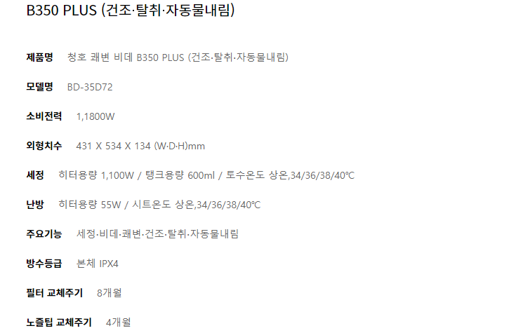 청호나이스 B350 PLUS 쾌변 비데 (쾌변+건조) (4개월 방문관리)