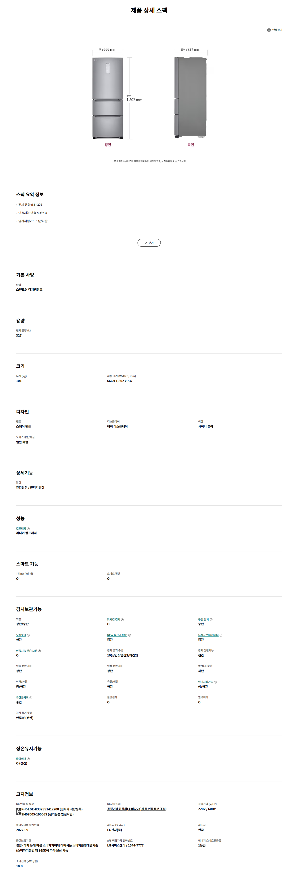 LG전자 오브제 컨버터플 327L 김치냉장고