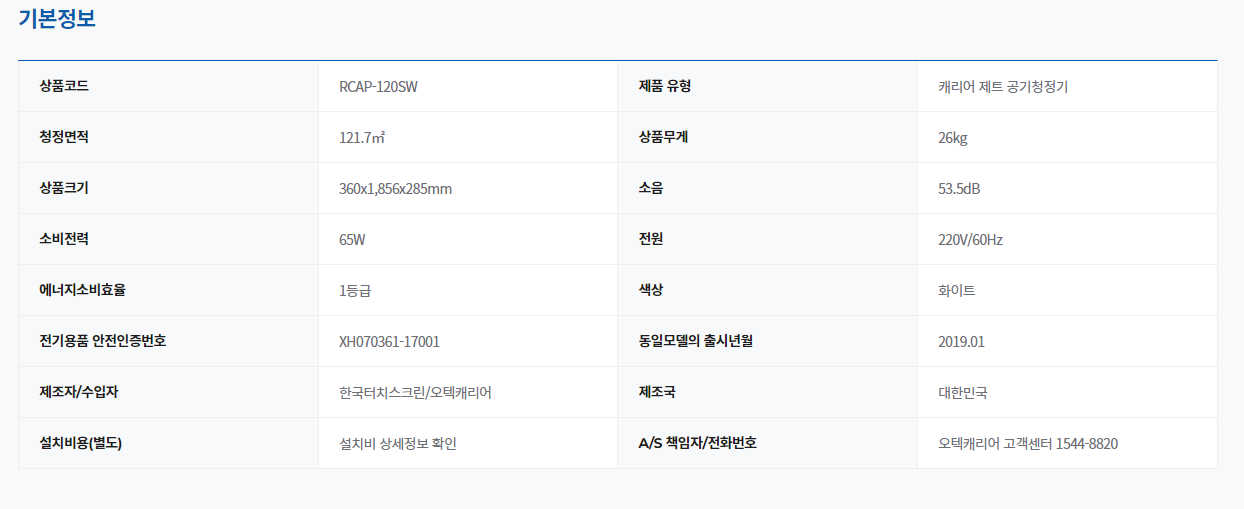 캐리어 제트 18단 36평형 공기청정기 (12개월 셀프관리)