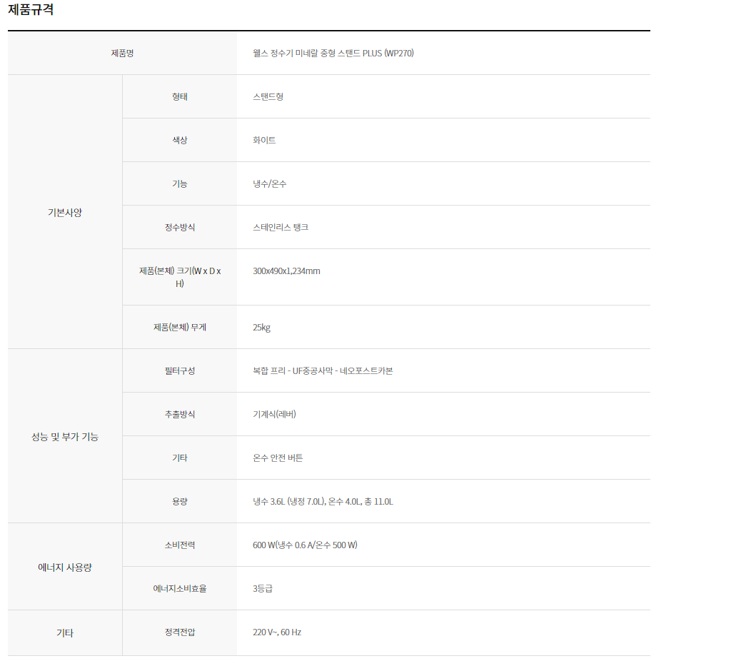정수기 (375) 냉온정수기 (229) 얼음정수기 (52) 기타 (0) 일반정수기 (32) 냉정수기 (62)