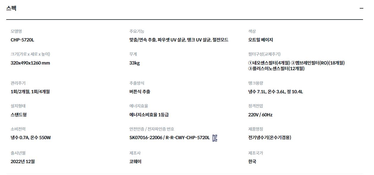 정수기 (375) 냉온정수기 (229) 얼음정수기 (52) 기타 (0) 일반정수기 (32) 냉정수기 (62)
