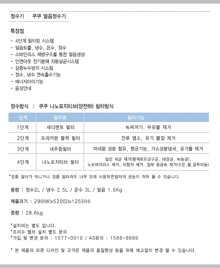 정수기 (375) 냉온정수기 (229) 얼음정수기 (52) 기타 (0) 일반정수기 (32) 냉정수기 (62)