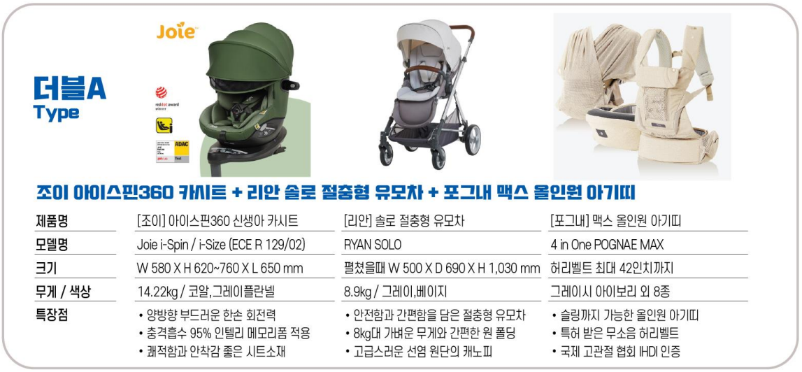 [보람상조] 더블 조이 아이스핀360 카시트 + 리안 솔로 절충형 유모차 + 포그내 맥스 올인원 아기띠