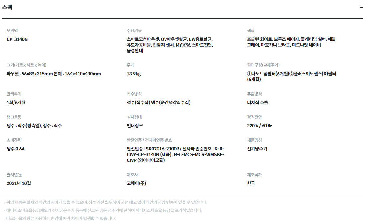 정수기 (375) 냉온정수기 (229) 얼음정수기 (52) 기타 (0) 일반정수기 (32) 냉정수기 (62)