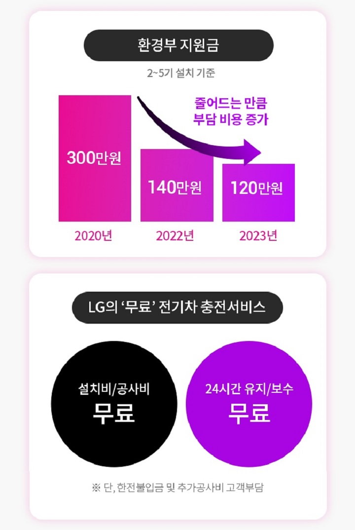 LG 전기차 충전기(설치비 무료 / 단 한전불입금 및 추가공사비 고객부담)