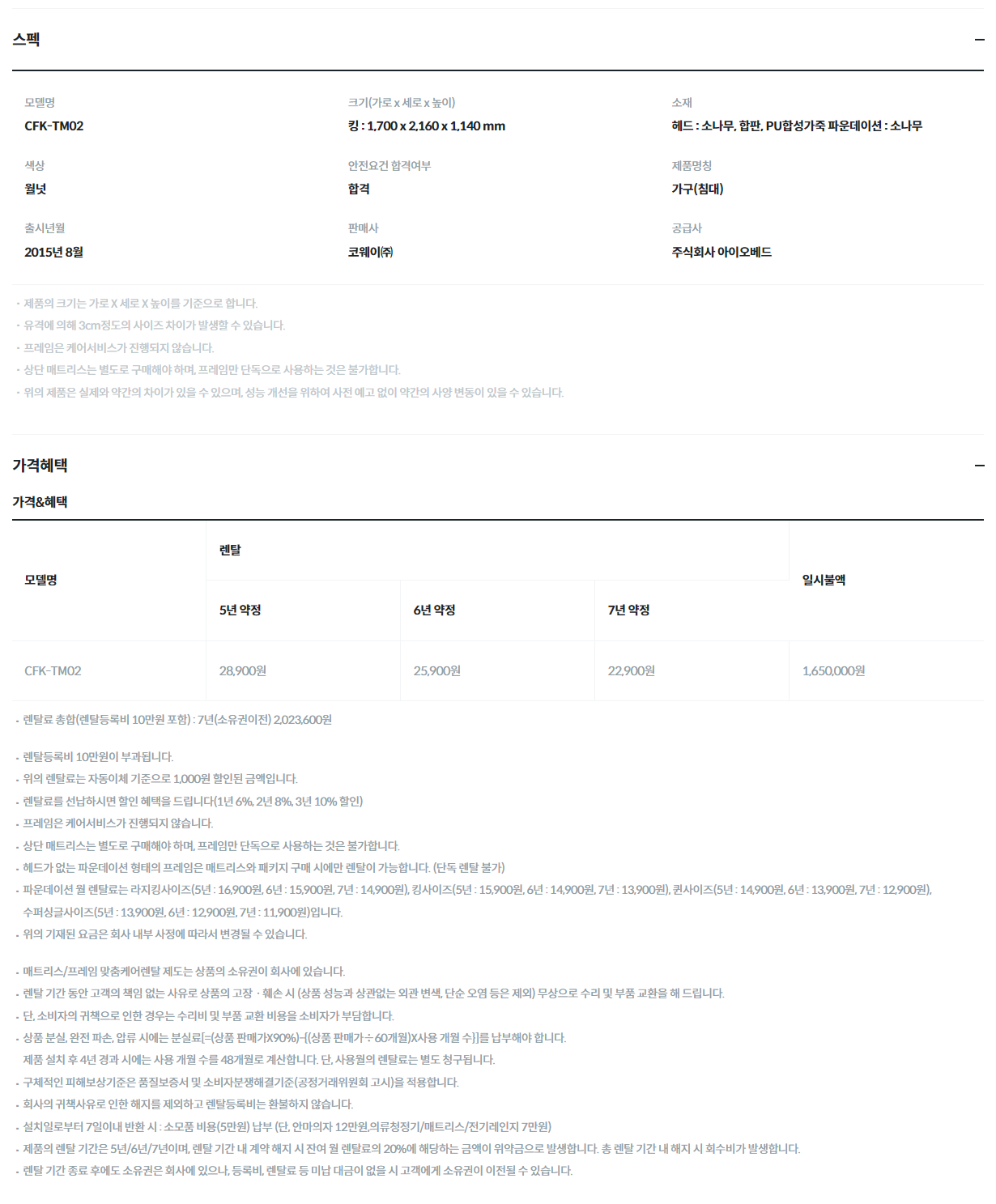 코웨이 투매트리스 프레임 (K)