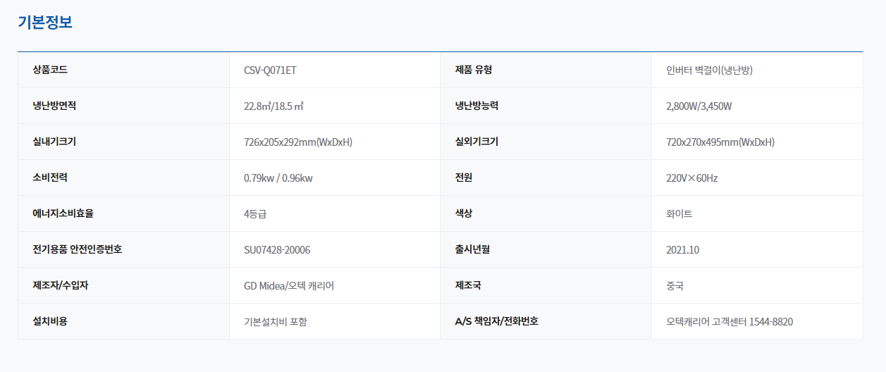 캐리어 인버터 벽걸이 7평형 냉난방기 (케어서비스 1회)