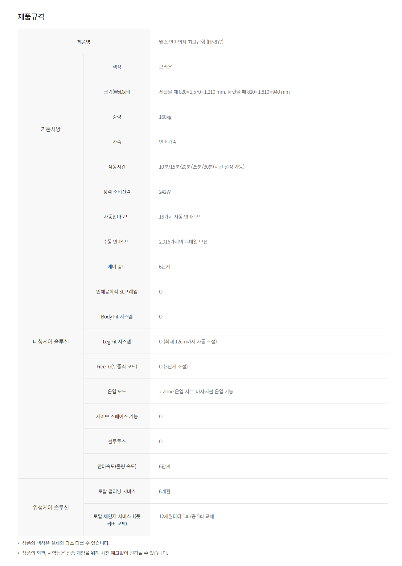 웰스 최고급형 안마의자 (6개월 특별관리)
