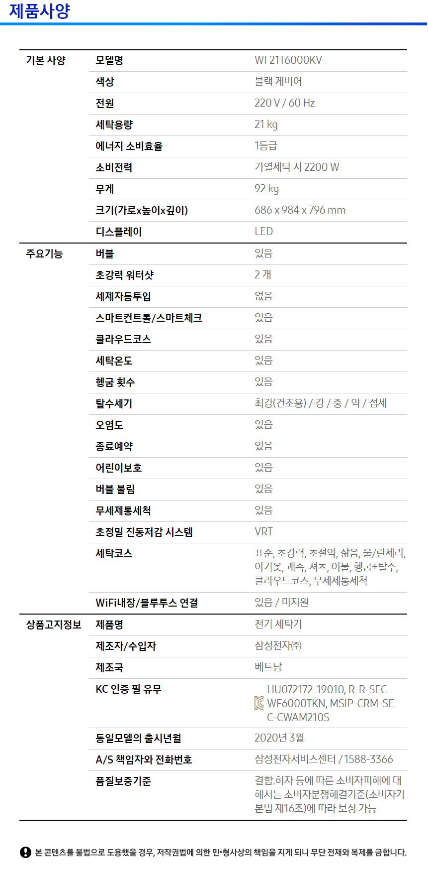 삼성전자 그랑데 세탁기 21kg