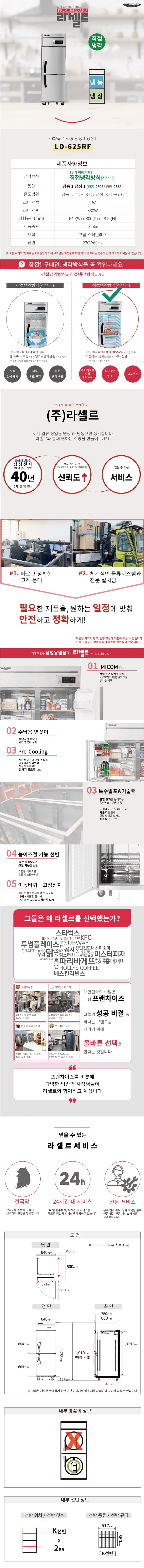 라셀르 600L급 올스텐 직냉식 냉장고+냉동고