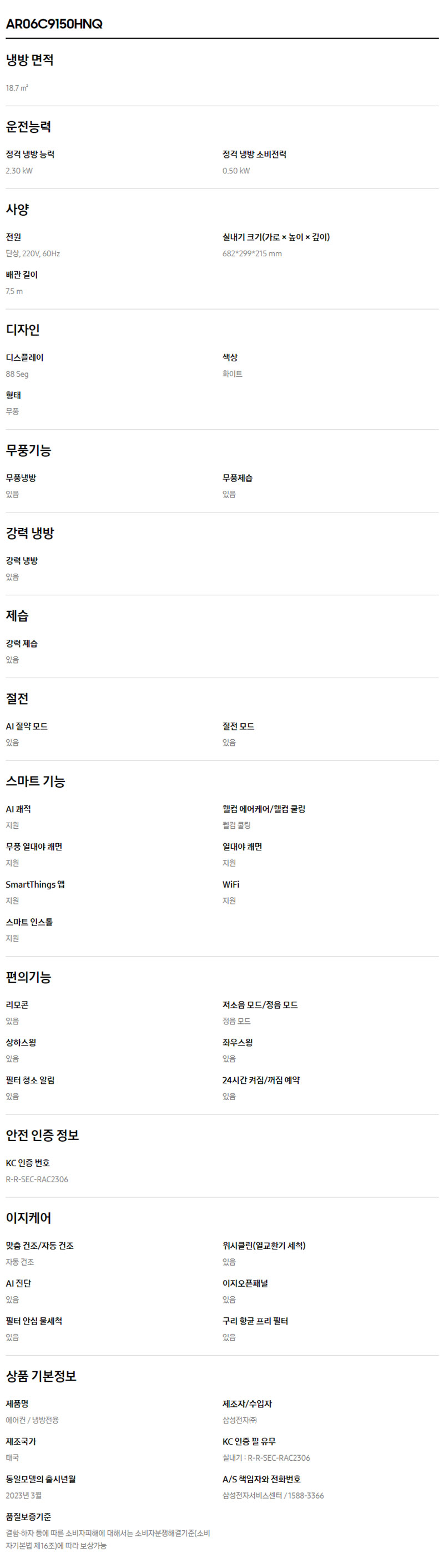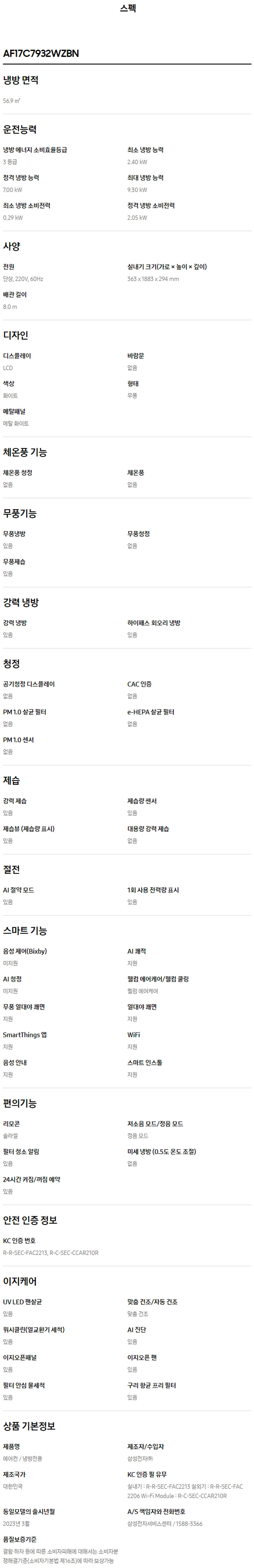 삼성전자 BESPOKE 무풍 클래식 2in1 17+6평형 에어컨 (매립)