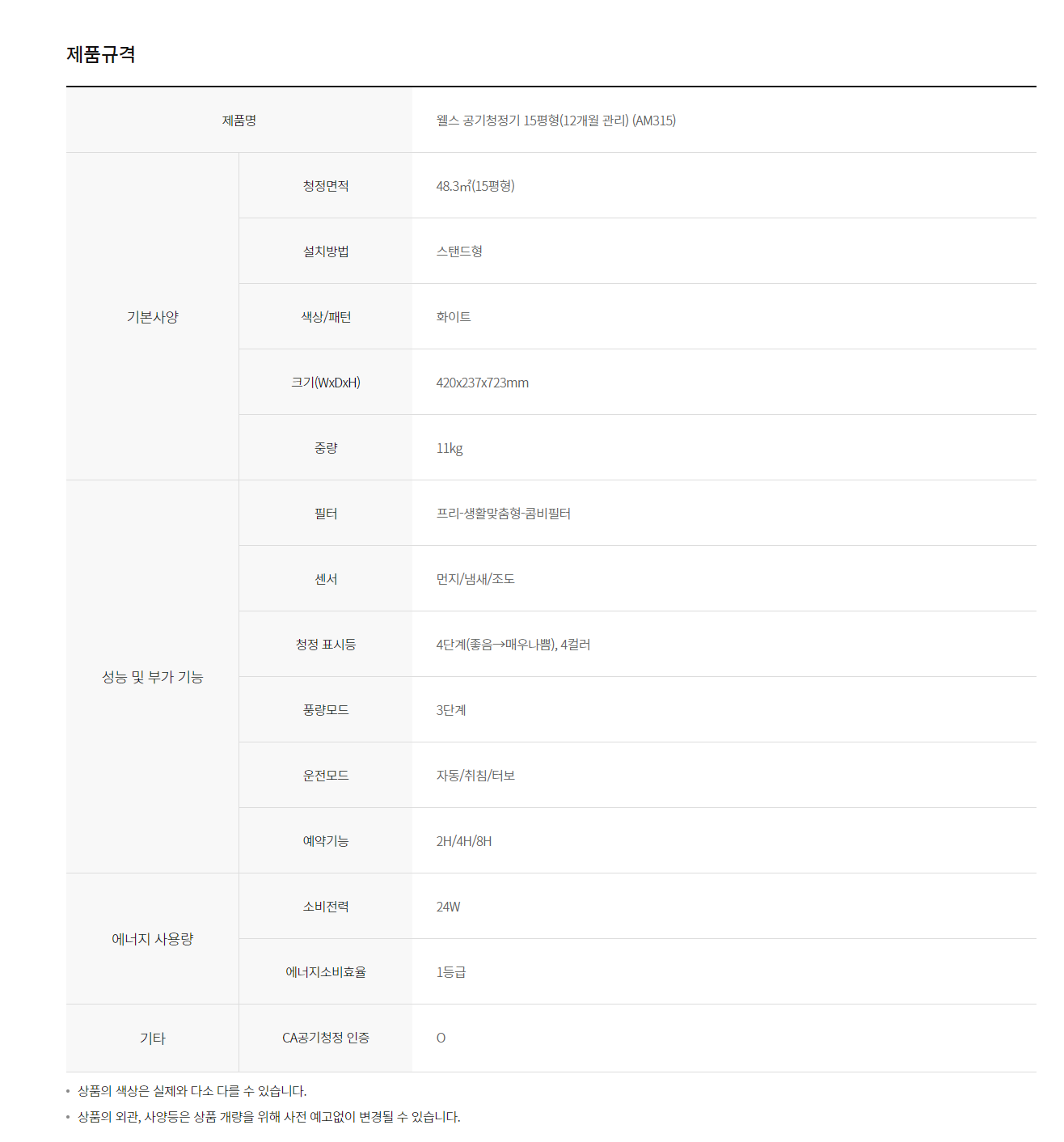 웰스 토네이도 30평형 공기청정기 (12개월 방문관리)