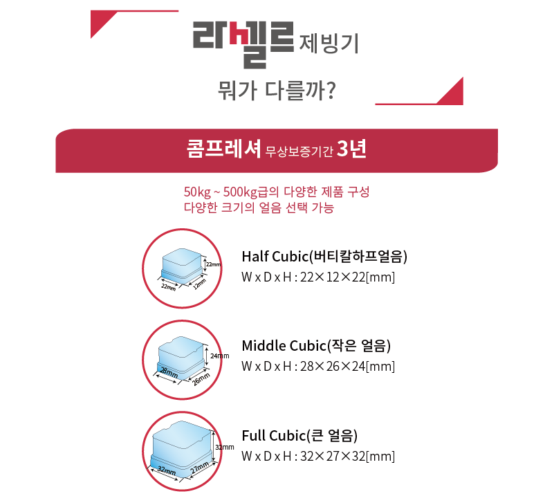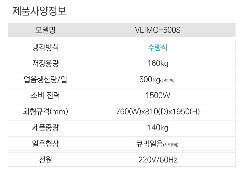 라셀르 수랭식 오픈 셀 큐빅얼음 500kg 제빙기