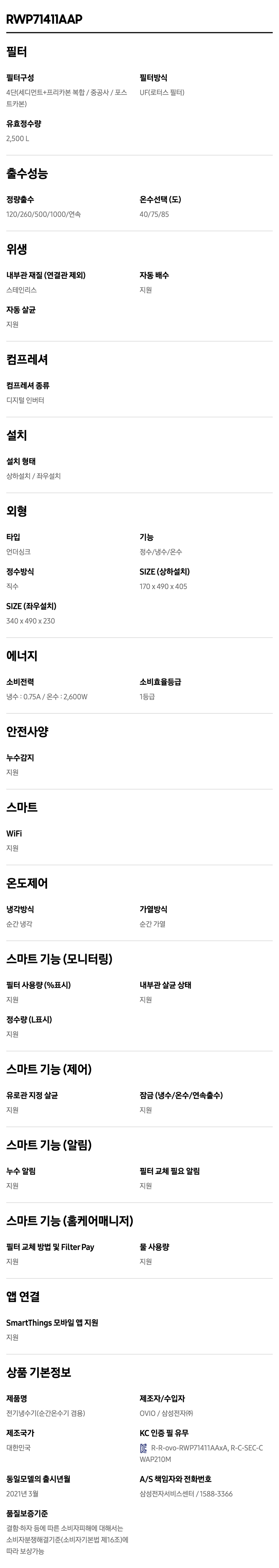 삼성전자 비스포크 메인파우셋 냉온정수기