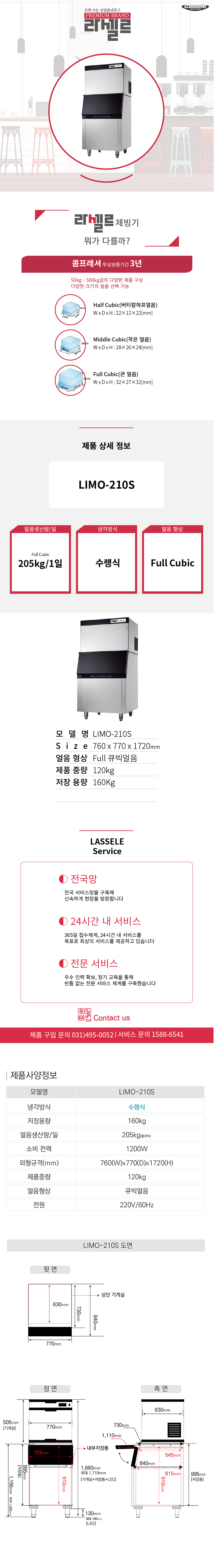 라셀르 수랭식 오픈 셀 큐빅얼음 205kg 제빙기
