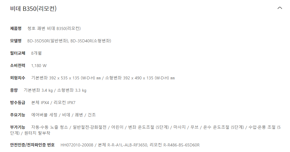청호나이스 B350 쾌변 비데 (쾌변건조+소형변좌) (4개월 방문관리)