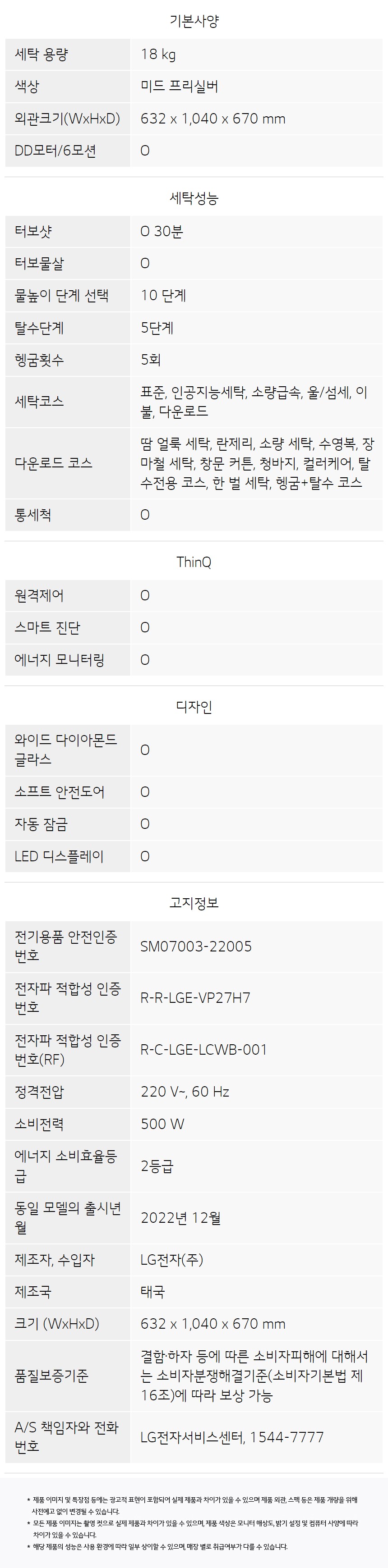 LG전자 18kg 통돌이 세탁기