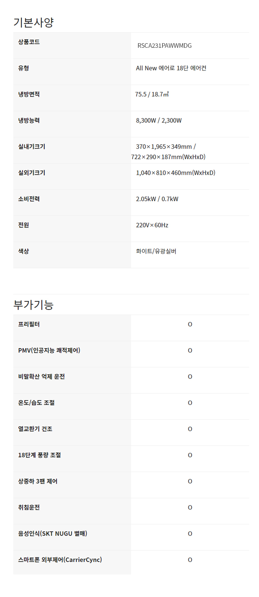 캐리어 올뉴에어로 α 고급형 23+6평형 냉방기 에어컨