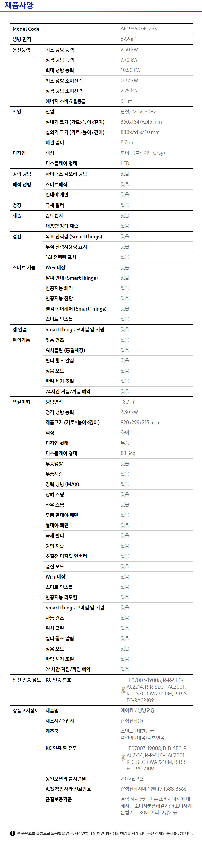삼성전자 Q9000 19+6평형 2in1 에어컨