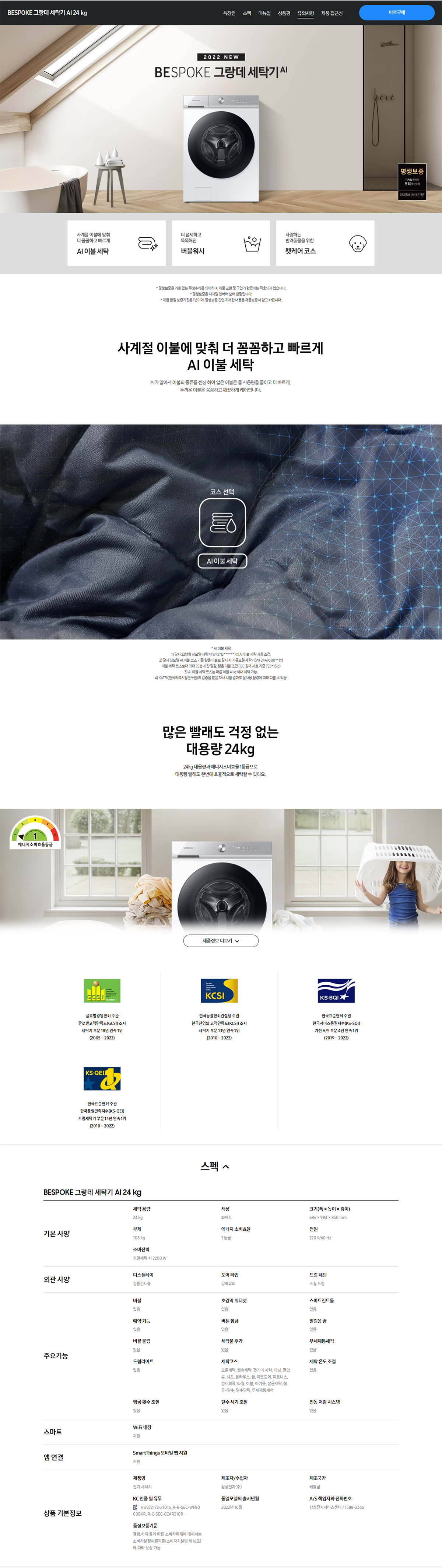 삼성전자 비스포크 그랑데 24kg AI 세탁기
