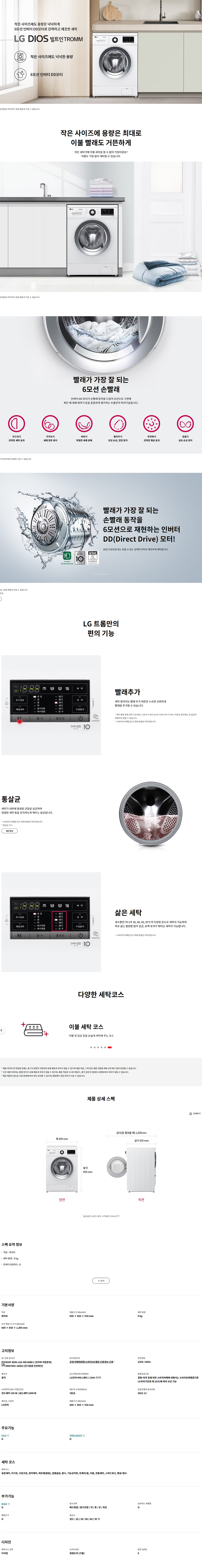 LG전자 디오스 빌트인 트롬 9kg 세탁기
