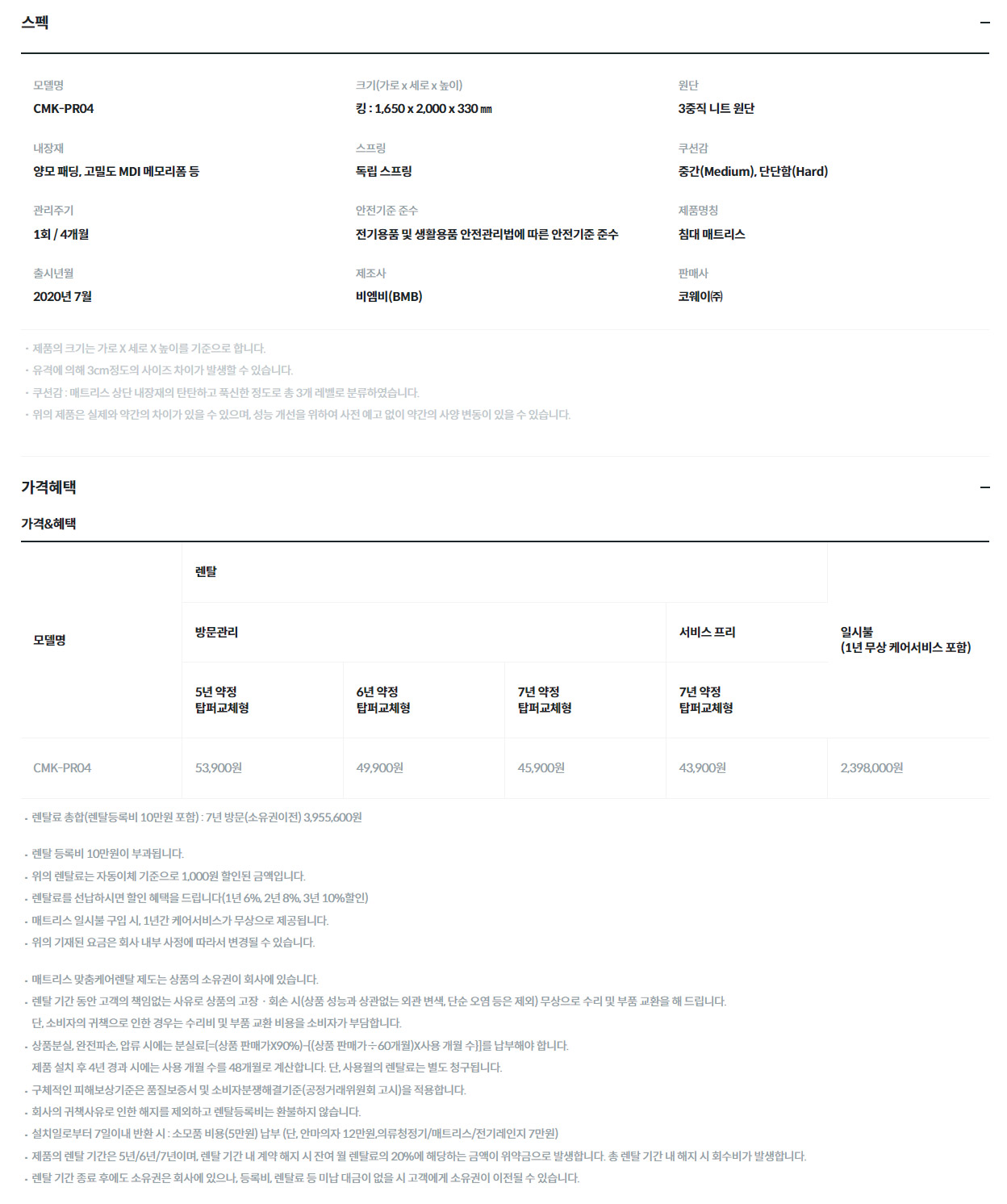 코웨이 탑퍼교체 하이브리드4 매트리스 (K)