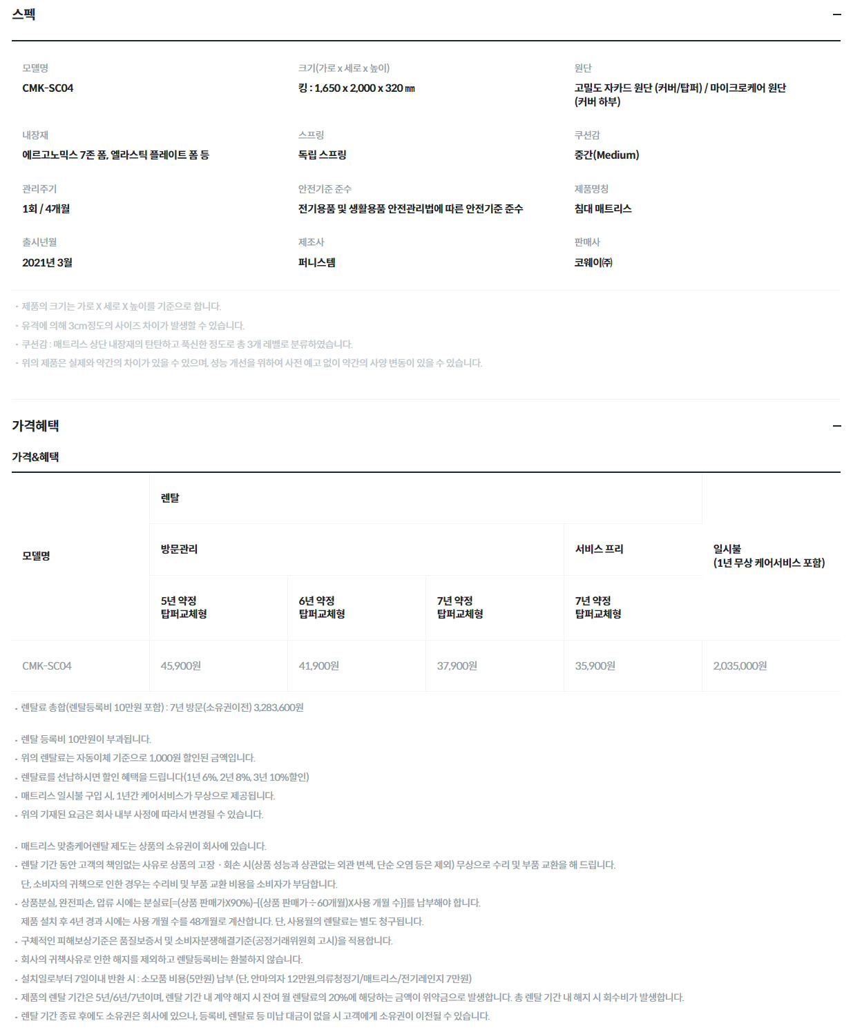 코웨이 비렉스 탑퍼교체 프라임 플러스 커버형 매트리스 (K)
