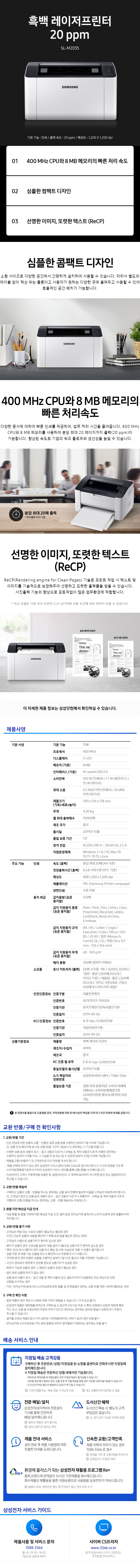 삼성전자 흑백 레이저 프린터 (20 ppm/메모리 8MB)