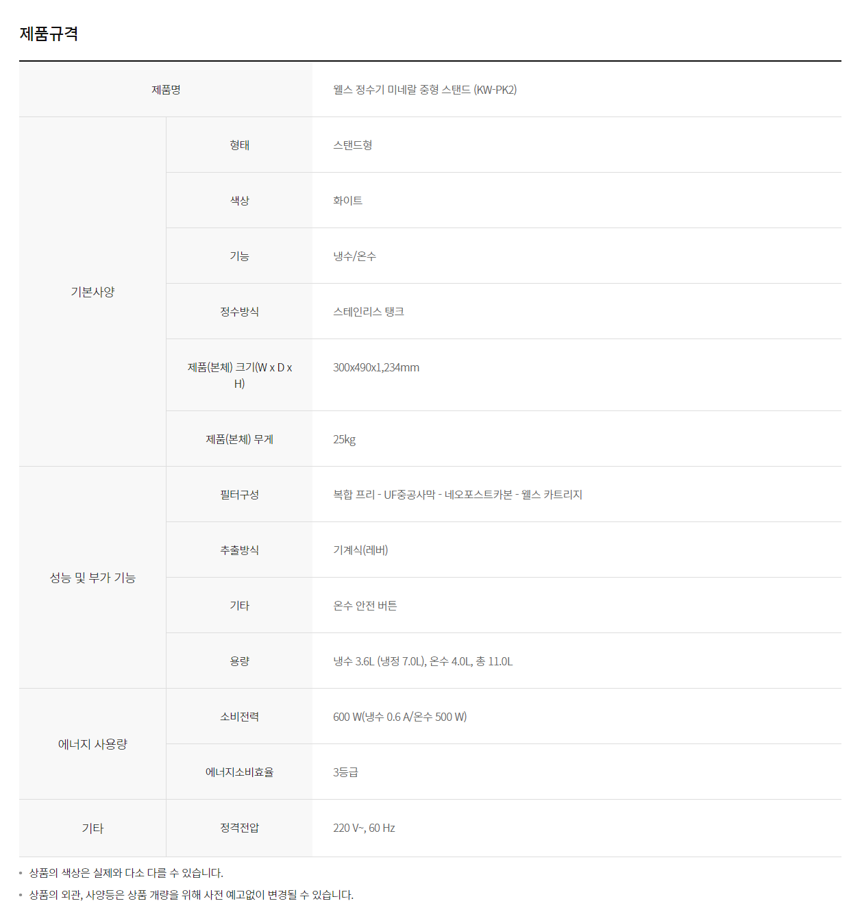 웰스 미네랄 중형 스탠드 냉온정수기 (3개월방문)