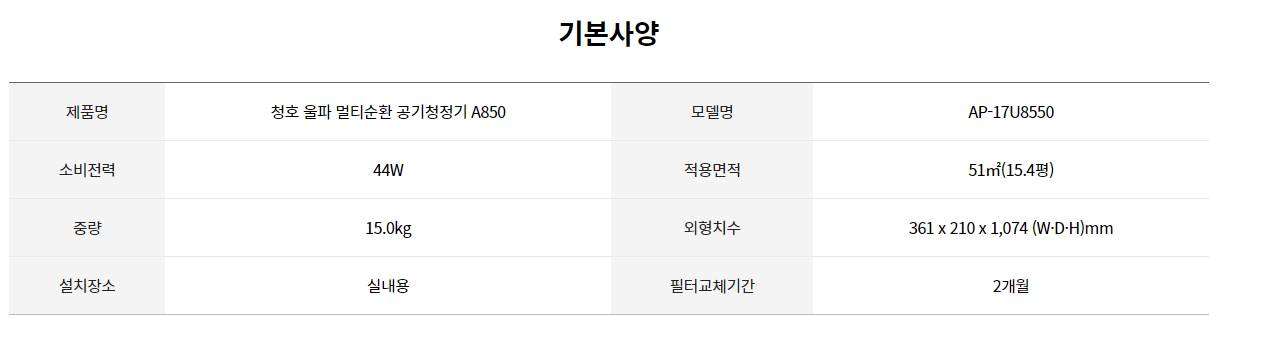 청호나이스 울파 멀티순환 A850 16평형 공기청정기 (스탠드) (2개월 방문관리)