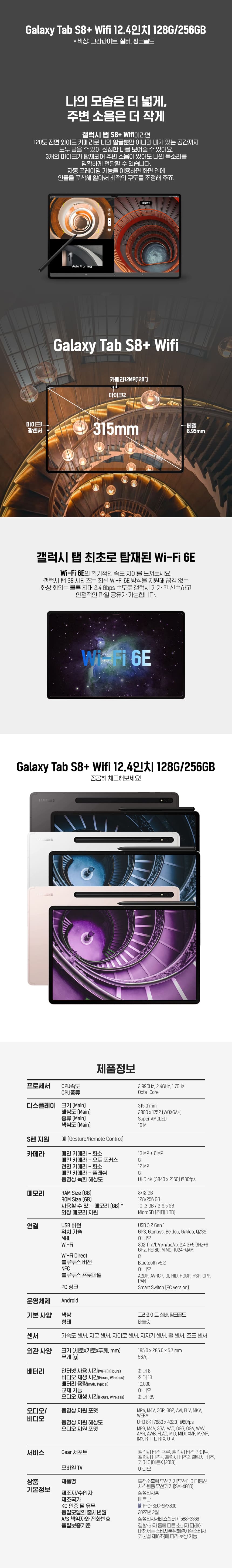 삼성전자 S8+ 12.4인치 갤럭시 탭 (Wi-Fi/128GB)
