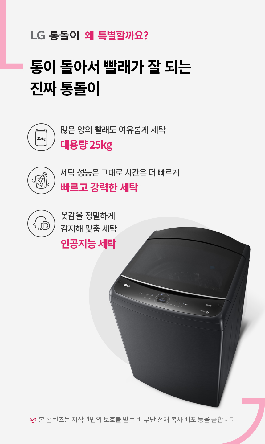LG전자 25kg 빠르고 강력한 통돌이 세탁기 (라이트서비스/6개월방문관리)