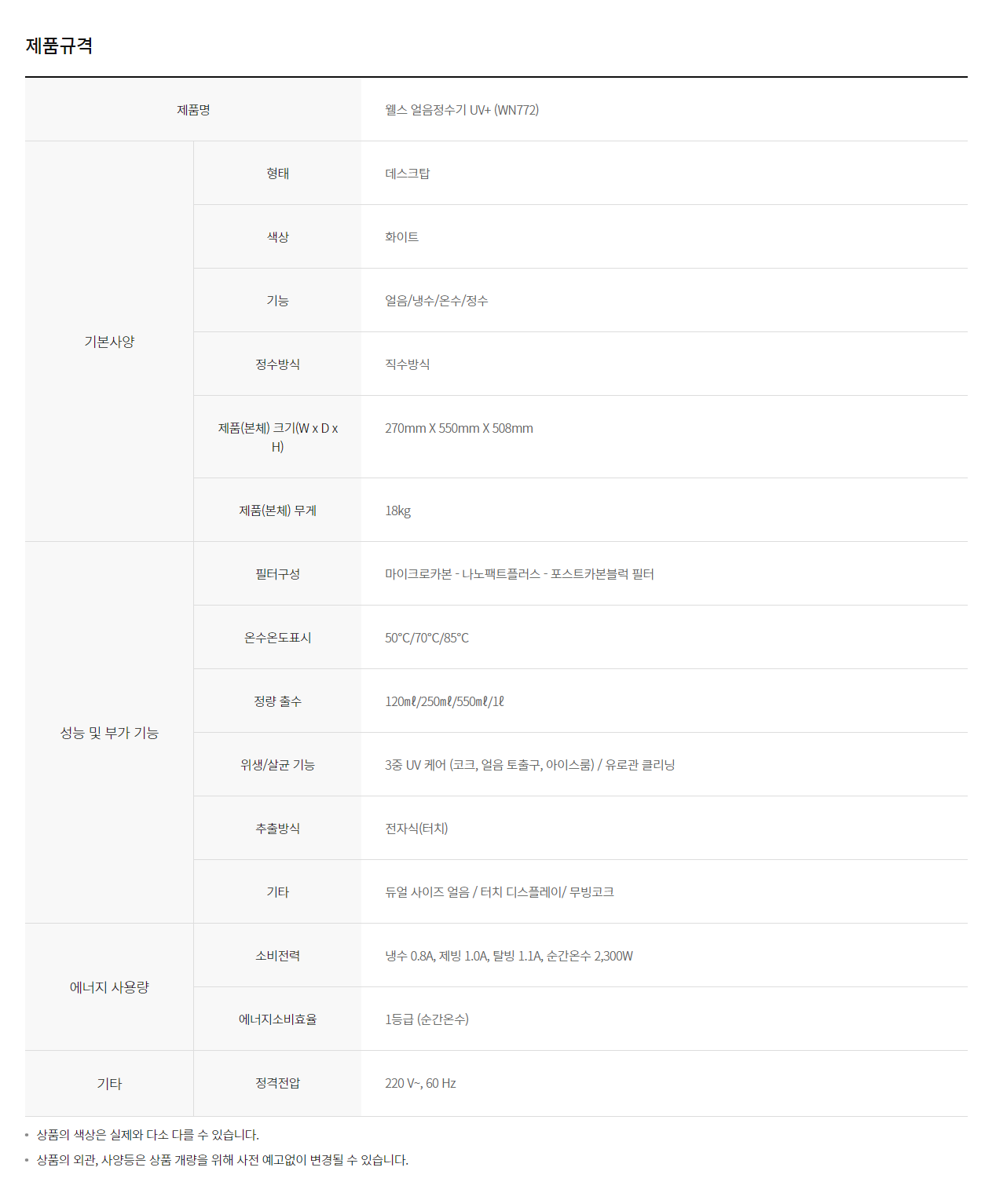 웰스 UV케어 얼음 냉온정수기 (3개월 방문관리)