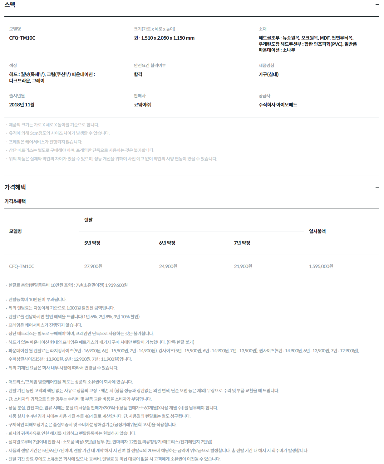 코웨이 투매트리스 프레임 쿠션헤드 (Q)