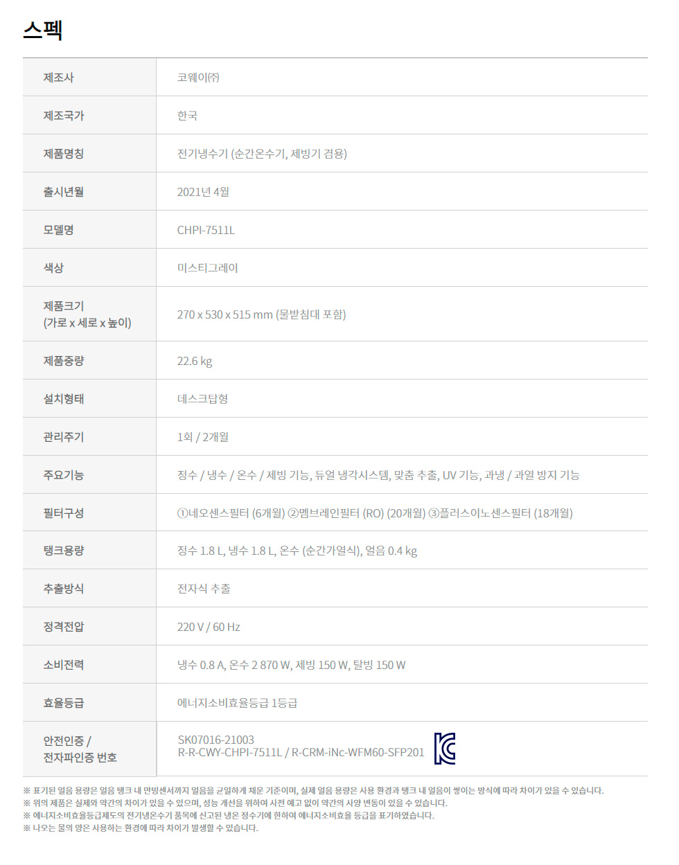정수기 (375) 냉온정수기 (229) 얼음정수기 (52) 기타 (0) 일반정수기 (32) 냉정수기 (62)