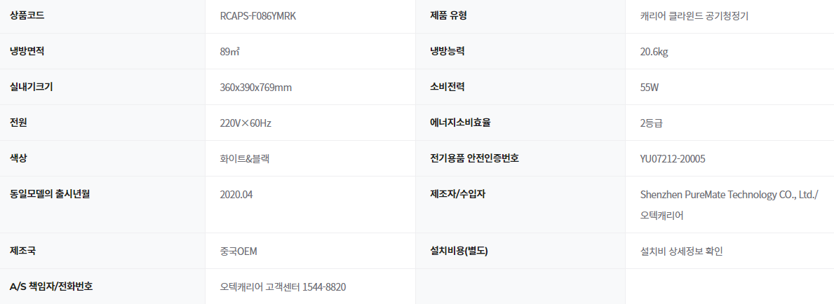 캐리어 클라윈드 27평형 Blue 500S 공기청정기 (12개월 셀프관리)