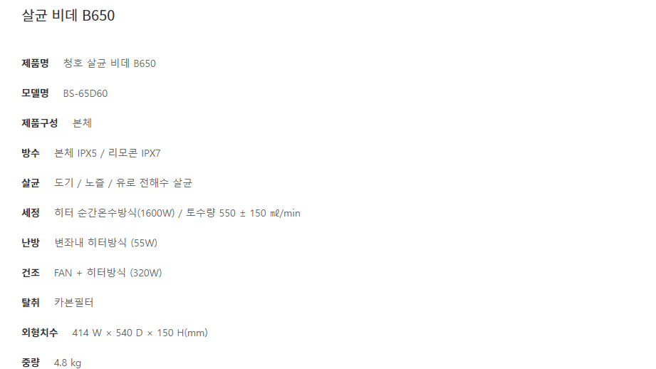 청호나이스 B650 살균 비데 (거치대옵션) (4개월 방문관리)