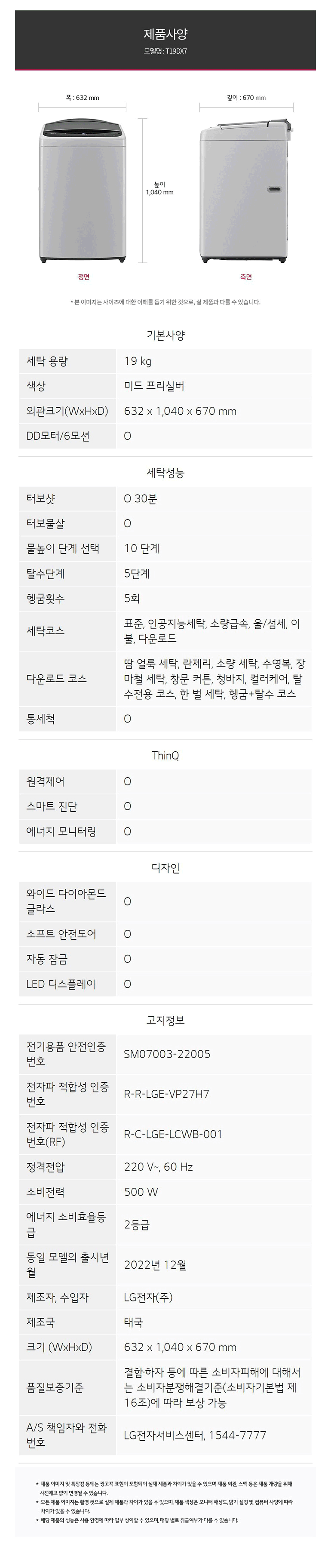 LG전자 19kg 통돌이 세탁기