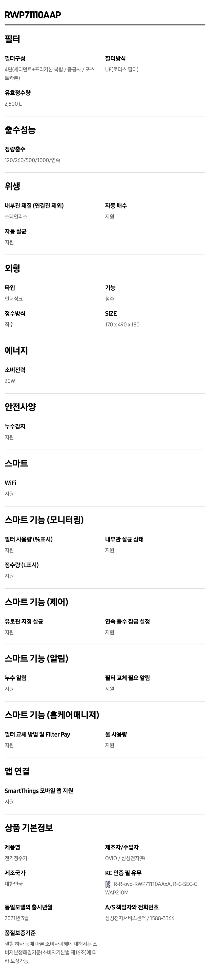 정수기 (375) 냉온정수기 (229) 얼음정수기 (52) 기타 (0) 일반정수기 (32) 냉정수기 (62)