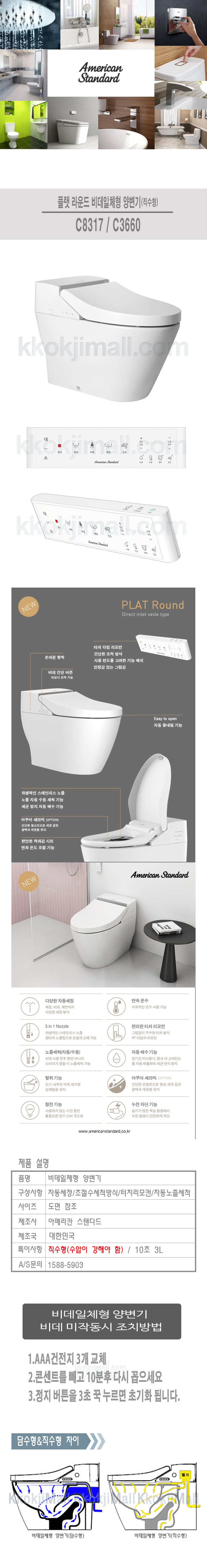 아메리칸스탠다드 플랫 내추럴 일체형 양변기 비데