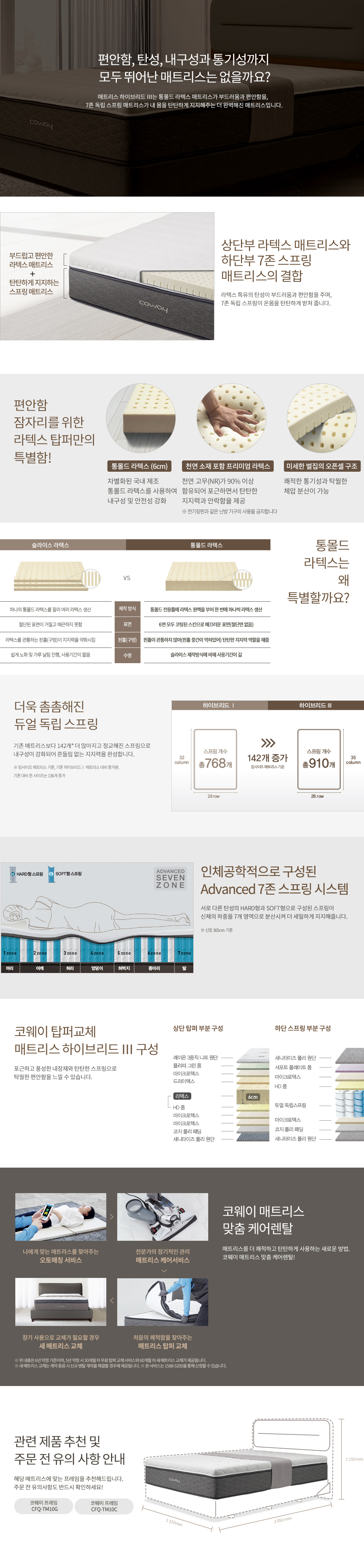 코웨이 비렉스 탑퍼교체 하이브리드 3 매트리스 (Q)