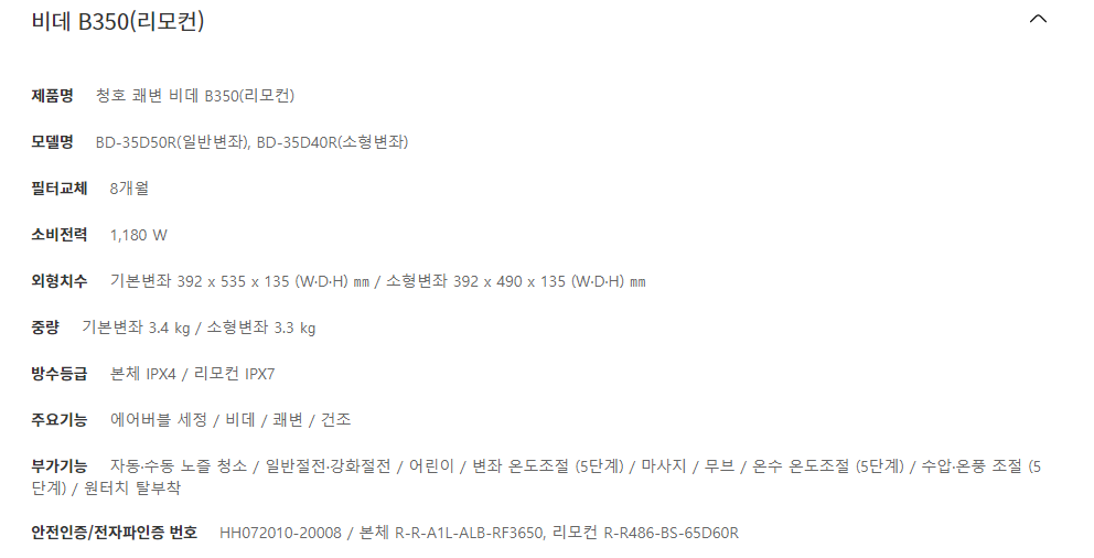 청호나이스 B350 쾌변 비데 (리모컨+소형변좌) (4개월 방문관리)