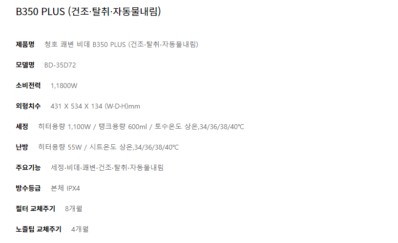 청호나이스 B350 쾌변 비데 (리모컨) (4개월 방문관리)